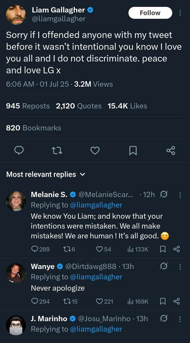리암 갤러거는 최근 트위터에 "Chingchong"이라는 단어를 사용하면서 큰 논란을 일으켰습니다. 이 단어는 중국어 억양을 조롱하는 인종차별적인 표현으로, 아시아인들에게는 굉장히 불쾌하게 들릴 수 있는 말입니다. 리암 갤러거는 그동안 직설적이고 거침없는 성격으로 유명했지만, 이번 발언은 예상치 못한 반응을 일으켰습니다. 그동안 그의 발언은 종종 논란을 일으켰지만, 이번만큼 팬들이 이렇게 크게 반응한 적은 처음입니다. "Chingchong"이라는 단어를 사용하면서 그가 얼마나 문화적 감수성이 부족했는지를 여실히 보여준 사건이었습니다. 그의 발언은 단순히 개인적인 실수로 넘길 수 없었고, 아시아 팬들에게 큰 실망감을 안겼습니다.